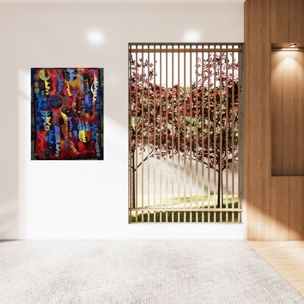 Through his use of vibrant colors and forms, Fashamani challenges societal norms and explores themes shaped by culture, politics, and technology.
