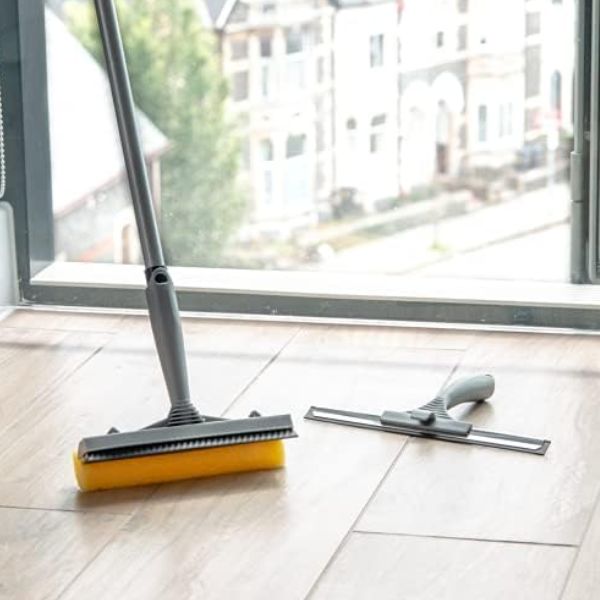 3-in-1 Cleaning System: Includes a telescopic handle, sponge wiper, and a handled blade that can all be interchanged for versatile cleaning.