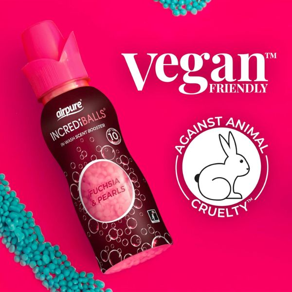 Refresh your fabrics and uplift your space with Airpure Incrediballs In-Wash Scent Booster in Fuchsia & Pearls. Each 128g container delivers up to 10 washes of bold, long-lasting fragrance that infuses your laundry with designer-inspired scent. Just pour a capful directly into the drum before washing to enjoy deeply scented clothes, towels, and linens. Perfect for brightening up everyday items like curtains, rugs, and throws, these vegan and cruelty-free scent beads are a simple way to add aromatic luxury to your home.