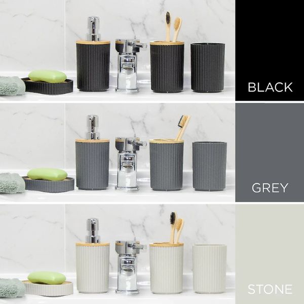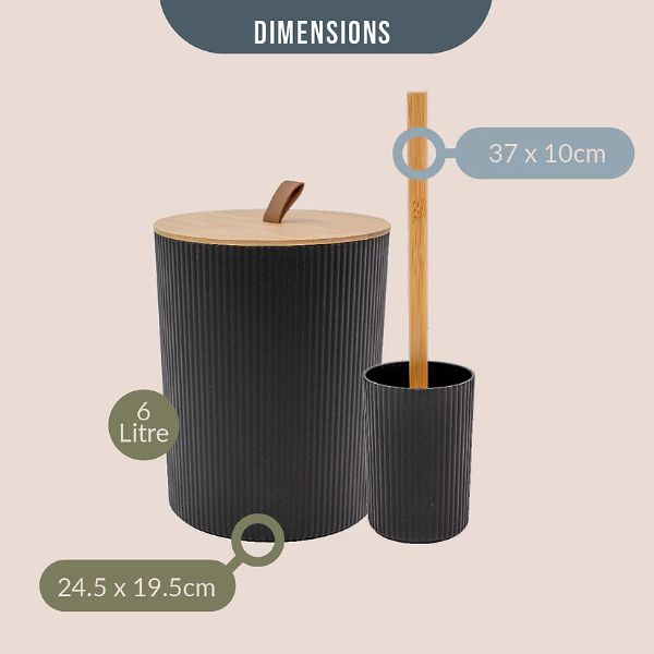 Upgrade your bathroom with the Anika 6-Piece Bathroom Accessory Set — a stylish and functional collection designed to keep your space organised and visually unified. Featuring sleek black finishes paired with elegant wood accents, this modern set includes all the essentials: a cup, toothbrush holder, waste bin, toilet brush, soap dish, and soap dispenser. Built from durable plastic and water-resistant wood, each piece is made to withstand daily use in humid environments while adding a warm, minimalist touch to your decor.