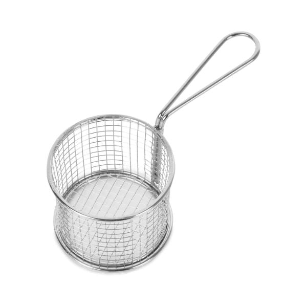 Round Stainless Steel Basket: Crafted from sturdy stainless steel for long-lasting use in both home and commercial kitchens.