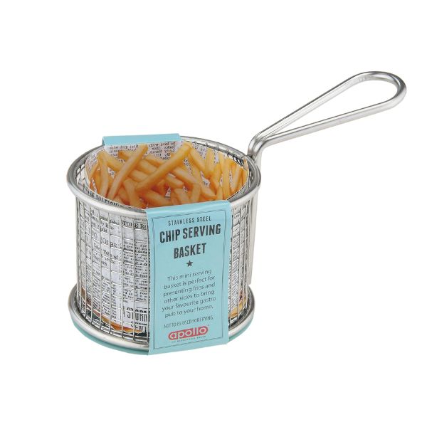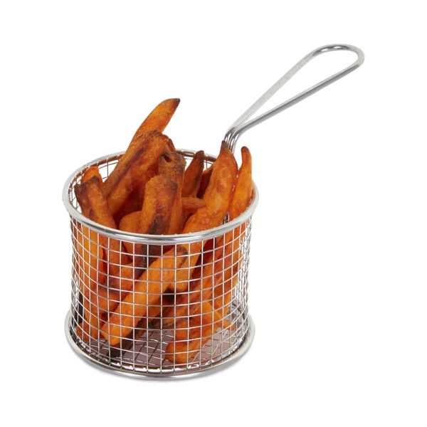 Serve chips and sides in style with the Apollo Stainless Steel Chip Serving Basket – Round. Designed to elevate casual dining and snack presentation, this durable stainless steel basket is perfect for sharing portions of fries, onion rings, or finger foods. Its open-weave design promotes airflow to keep food crisp, while the round shape adds a touch of rustic charm to any table setting — ideal for home use, cafés, pubs, and food trucks.