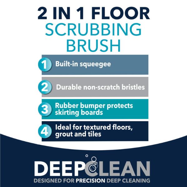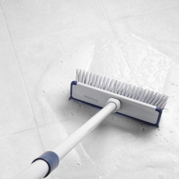 Achieve a spotless home with the Beldray Deep Clean 2-in-1 Floor Scrubbing Brush. Featuring durable bristles and a built-in squeegee, this multipurpose cleaning tool is designed for deep, efficient cleaning. Its extendable handle and slim brush head allow for easy access to corners and tight spaces, while the rubber bumper protects your walls and skirting boards during use.