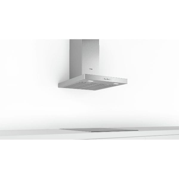 The Bosch Serie | 2 Wall-Mounted Cooker Hood offers a stylish and functional solution for maintaining fresh, odor-free air in your kitchen. With powerful ventilation and a sleek stainless steel design, it seamlessly blends into modern kitchens while ensuring a comfortable cooking environment.