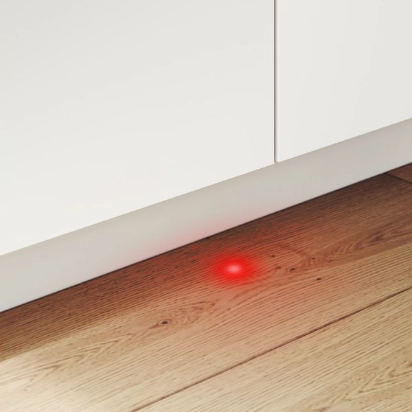InfoLight: A discreet red light projected onto the floor indicates when the dishwasher is in operation.