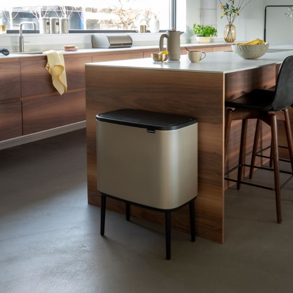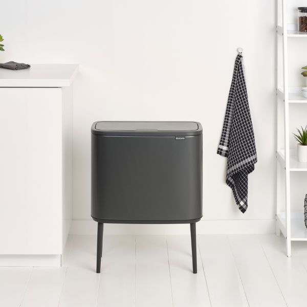 Looking for a waste solution that matches your style? This Brabantia Bo Touch Bin combines a beautiful design with 36 litres of capacity. It is designed to last with love for your home. This space-saving bin fits perfectly against a wall, and is very stable, thanks to the adjustable non-skid legs. Its unique soft-touch opening makes for easy and light operation at the touch of your hand. Go Bo!