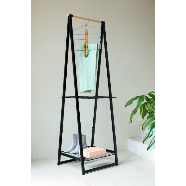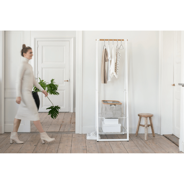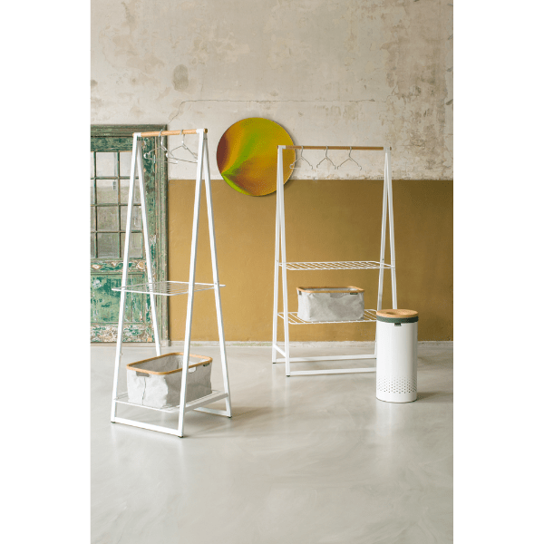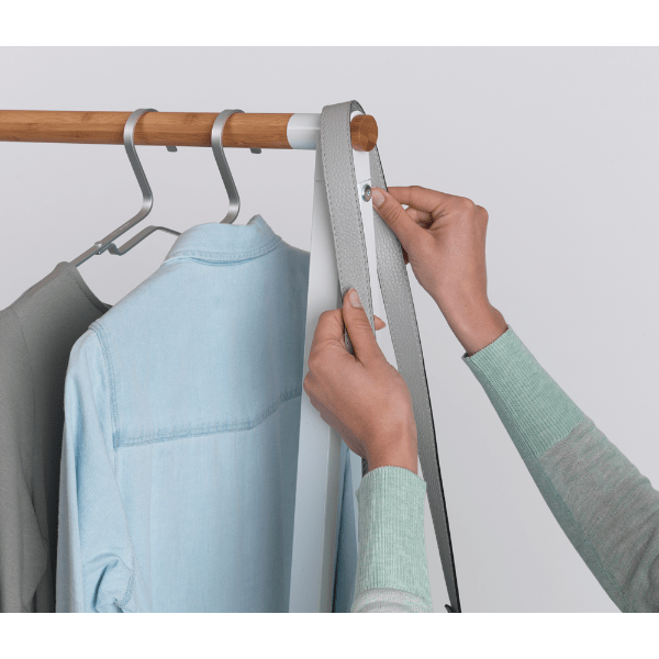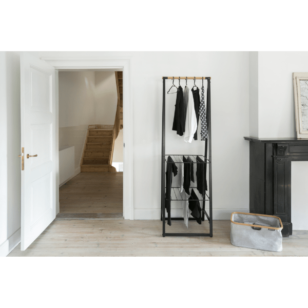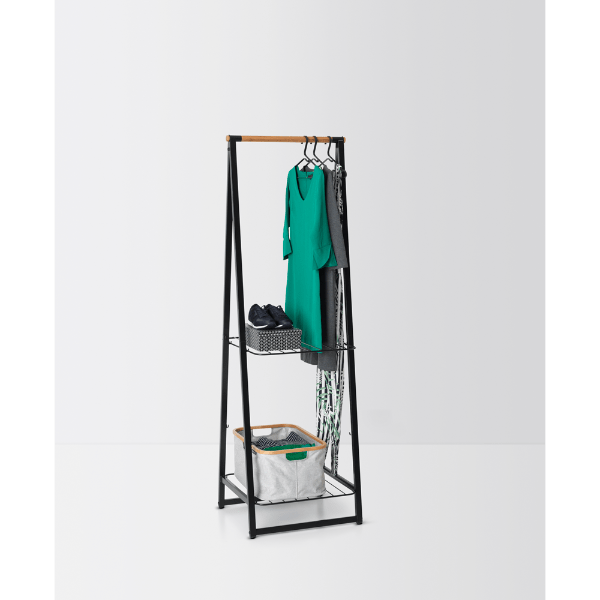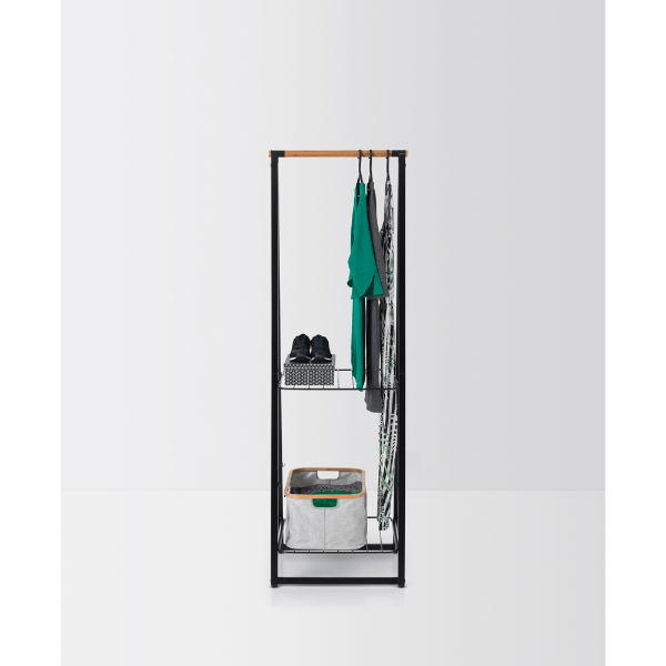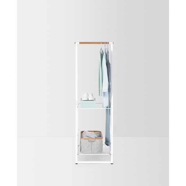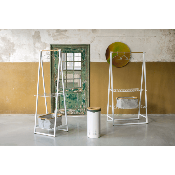 Keep your clothes stylishly organised with the Brabantia Linn Clothes Rack. Perfect for compact spaces, this free-standing rack features a durable bamboo rod for hanging and two height-adjustable shelves for versatile storage. Whether you use it to air-dry laundry, display clothes, or neatly store shoes and accessories, the Linn Clothes Rack adds a touch of elegance to any bedroom, laundry room, or hallway.