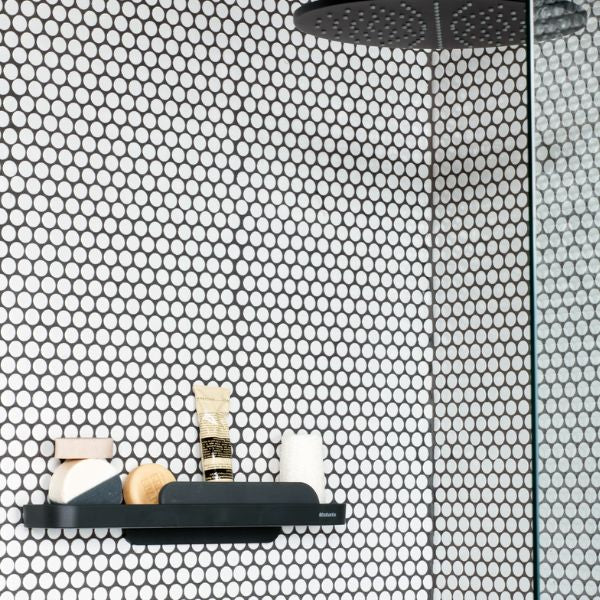 Completely organise your shower in one go - treat it to this smart Brabantia MindSet Shower Shelf with Squeegee. The shelf happily holds your shampoo or shower gel. The small squeegee has a minimalist design and is made to effortlessly wipe off your shower door and tiles. All clear? Put it back on the shelf.