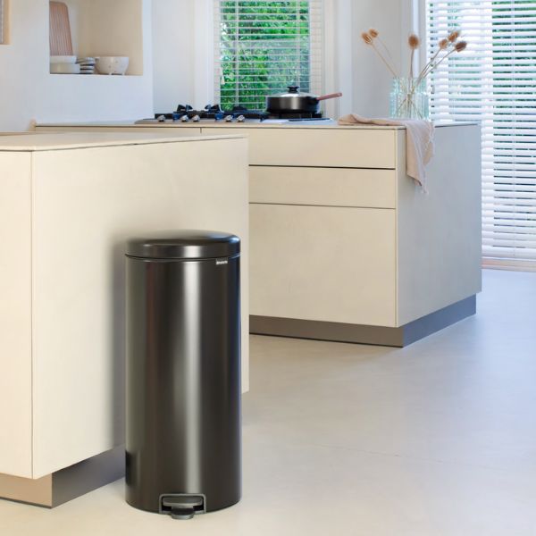 Brabantia’s 30 litre Pedal Bin NewIcon has an iconic design, and is a reliable worker too. Sturdy, and always standing strong because of its non-slip base and anti-tilting block. Thanks to the unique soft-closure feature, it closes smoothly. And of course this NewIcon Pedal Bin is hygienic, odour-proof, easy to open and to keep clean. Perfect for your kitchen or any other room that could use 30 litres of timeless design.