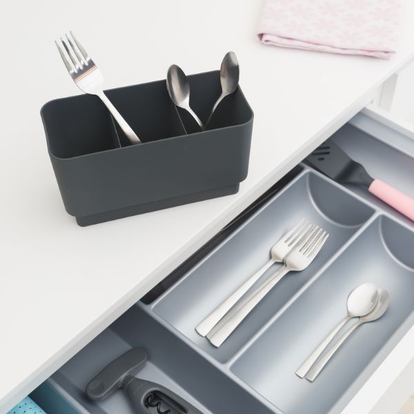 This Brabantia SinkSide Dish Drying Rack is designed for keeping your dripping dishes. It has a sleek design, but space for up to 13 plates plus bowls, cutlery and glasses. It has a removable cutlery basket and a sloping drip tray too, so drippings run directly into the sink. This rack is on track!