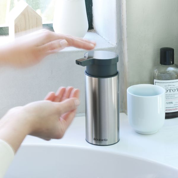 Bring great style into the smallest room, bathroom or kitchen with the top-notch Brabantia Profile Soap Dispenser. A stylish accessory made of high quality metal and plastic, for everyone that is serious about hand hygiene and design. This little beauty doesn’t just dispense soap, it oozes quality, from the large refill-opening to its non-slip base. A shiny example of Brabantia’s hands-on designs.