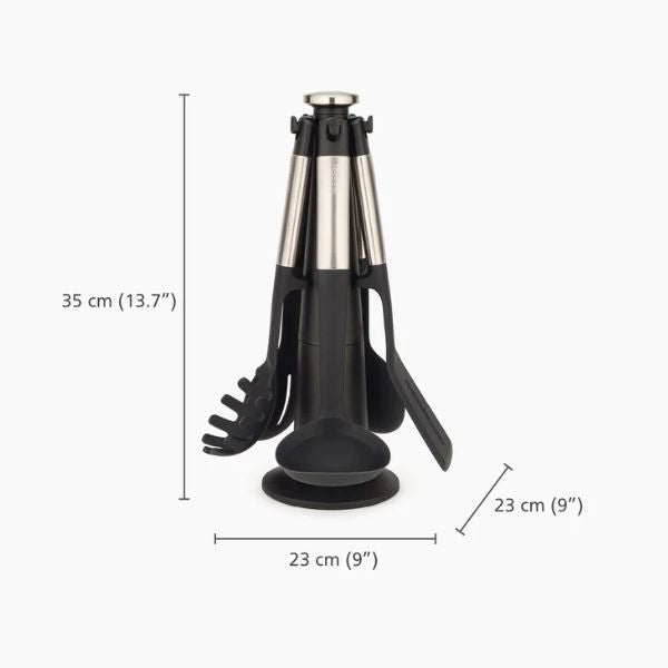 Upgrade your kitchen with the Joseph Joseph Elevate Stainless-Steel Silicone 5-Piece Utensils Carousel Set, designed with Elevate™ technology to improve hygiene and reduce mess while cooking. Each utensil features a weighted stainless-steel handle and integrated tool rest, keeping the head raised off your work surface for cleaner, more efficient food preparation.