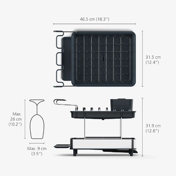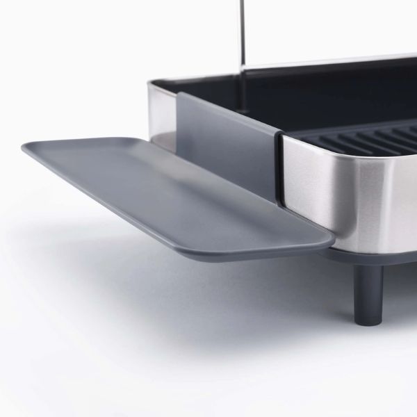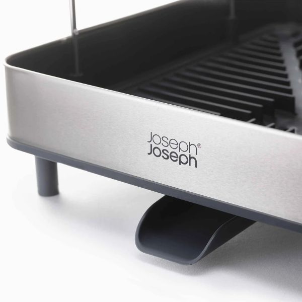 Keep your kitchen sink area organised and efficient with the JosephJoseph Excel Stainless-Steel 2-Tier Dish Rack. Designed to provide maximum drying capacity without taking up excess space, this compact yet spacious dish rack features a durable stainless-steel construction with a fingerprint-resistant coating for a clean, modern look. Its smart two-tier layout, integrated drip tray, and dedicated wine-glass rail allow you to dry plates, bowls, cutlery, and delicate glassware safely and efficiently in one convenient place.