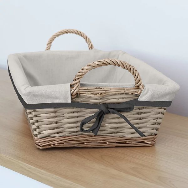 Lined with Washable Fabric: Includes a removable lining with grey trim and bow that can be washed to keep the basket looking like new.