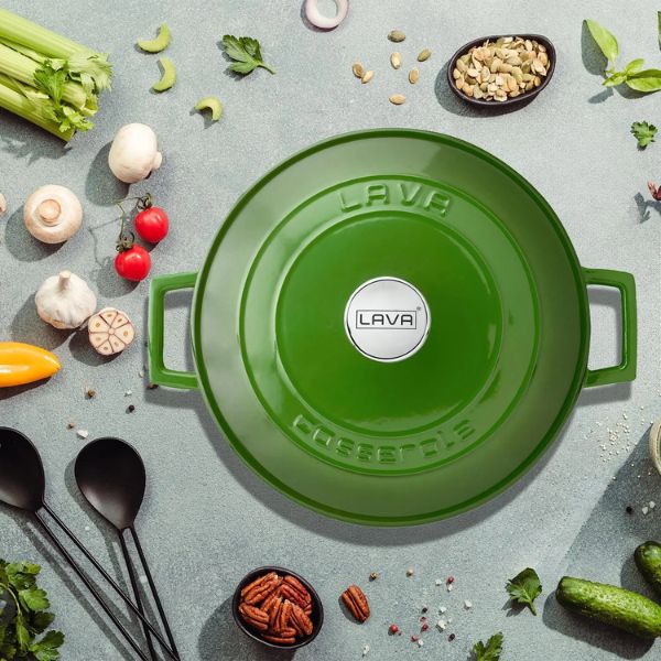Innovative technology and design come together in LAVA Enameled Cast Iron Cookware. Composed of cast iron sealed with enamel, LAVA Enameled Cast Iron Cookware will be by your side for long years thanks to its durability. While LAVA Enameled Cast Iron Cookware is dishwasher safe, don’t forget to run extra rinse to clear off any harmful detergent agents hanging around.