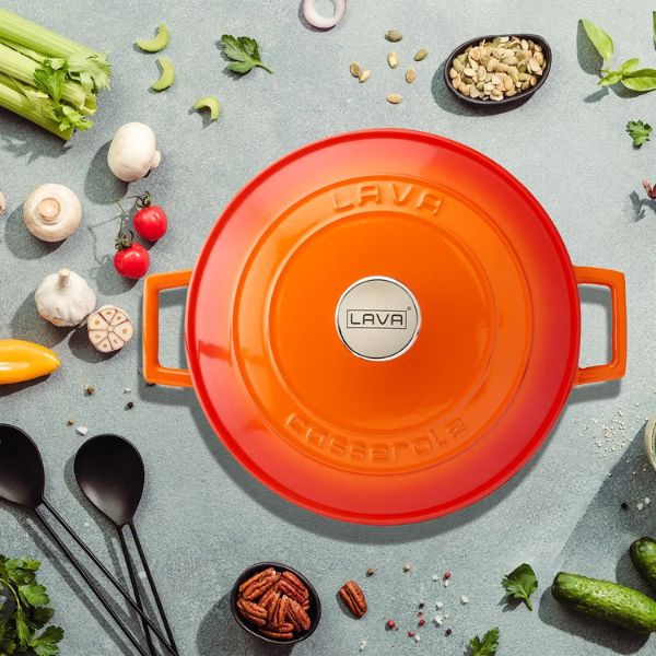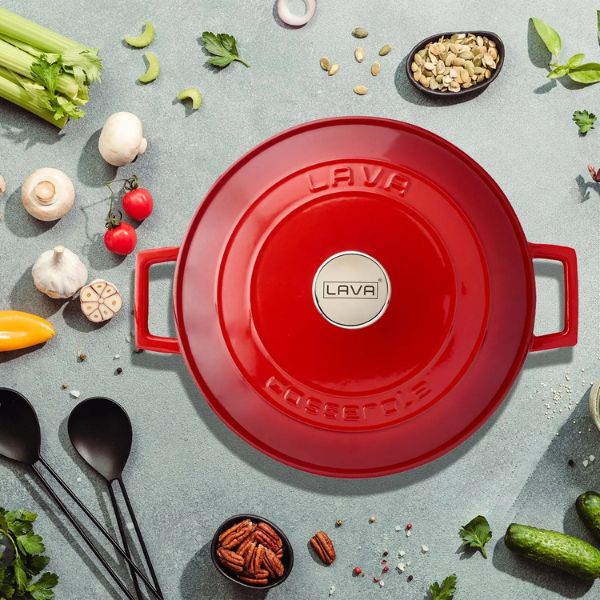 The heaviness of LAVA Enameled Cast Iron Cookware is the secret ingredient to delicious recipes! LAVA Enameled Cast Iron Casseroles are perfect for slow-cooking, with high heat-retaining qualities and distributing the heat evenly. In addition, LAVA Enameled Cast Iron Cookware contributes to a greener future by promoting energy conservation.