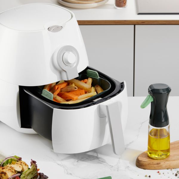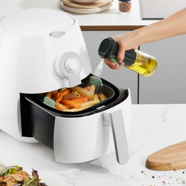 Prepare healthier dishes while using less oil with this versatile Oil Sprayer. Featuring a fine fan-shaped spray, it coats your ingredients evenly for that perfect crispy bite — ideal for air fryer cooking. With an anti-clog filter, anti-drip system, and a practical dishwasher-safe glass bottle, this sprayer is your essential companion for making healthy, mess-free meals every time.