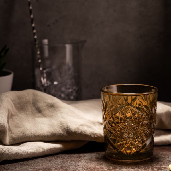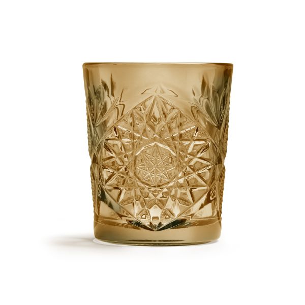 Bring a timeless charm to your glassware collection with the Onis Hobstar DOF Ocher Glasses – where vintage design meets modern practicality.