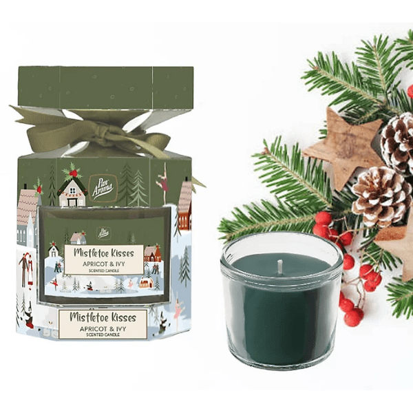 Transform your living space into a cozy haven with our Christmas Jar Candle. Infused with the inviting fragrance of 'Mistletoe Kisses' (Apricot & Ivy), this candle is the perfect addition to your holiday ambiance.