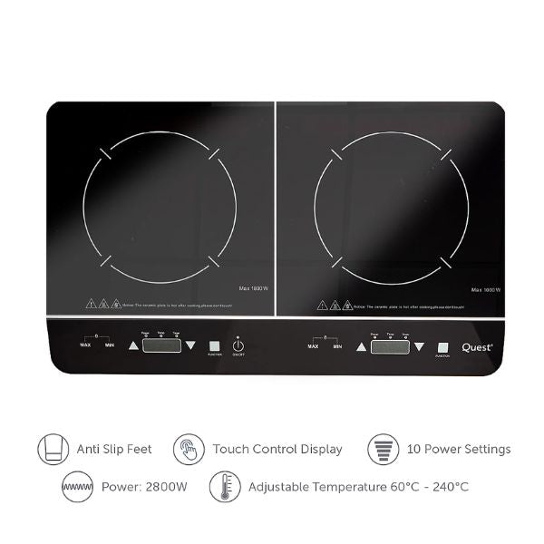 Upgrade your cooking experience with the Quest Digital Double Induction Hob & Hot Plate 35840 – a compact, efficient, and powerful 2800W portable cooking solution. Perfect for travel, small kitchens, or as an extra cooking surface, this dual induction hob offers precise temperature control and timer settings, allowing you to cook with speed and confidence.