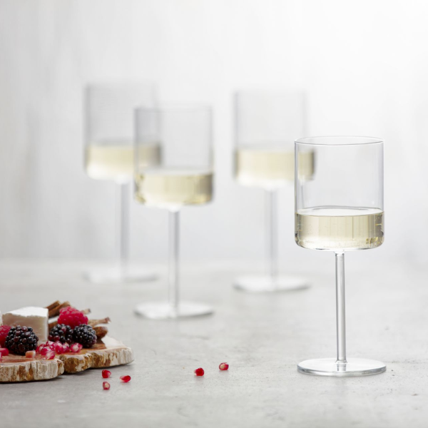 Architectural Form: Angular goblet and tall stem combine for a striking silhouette that stands out on any table.