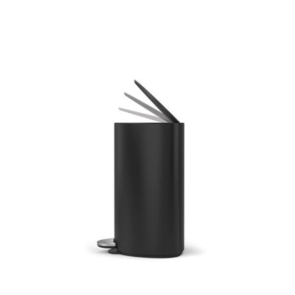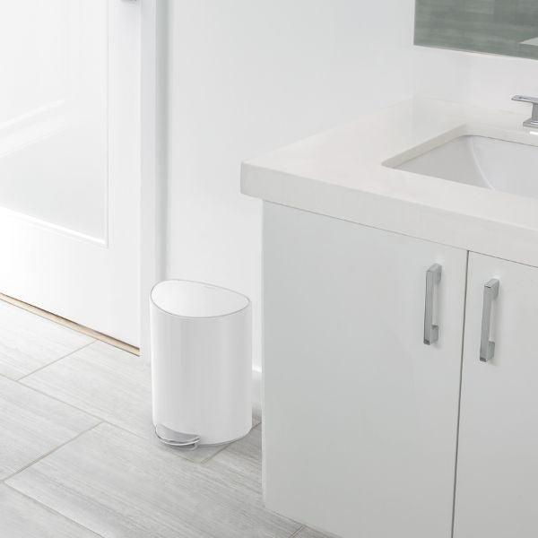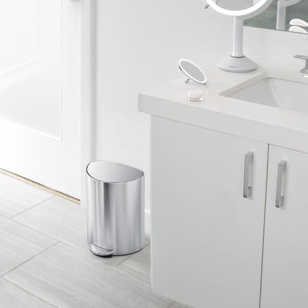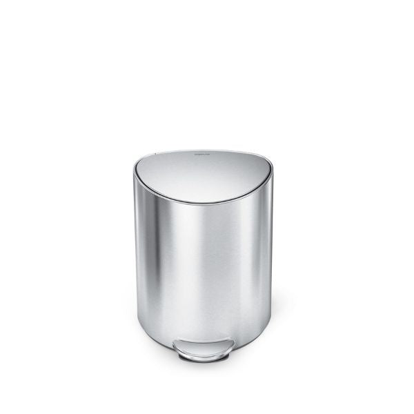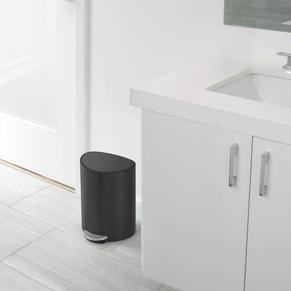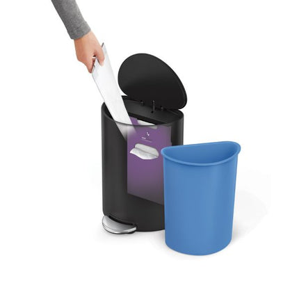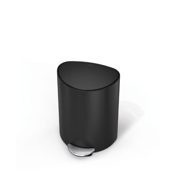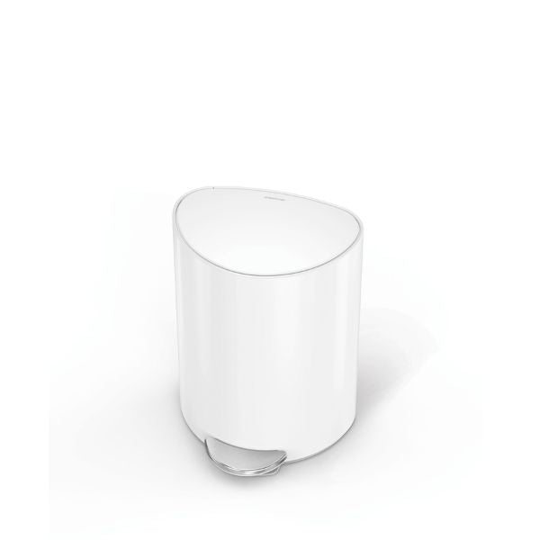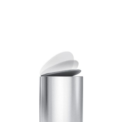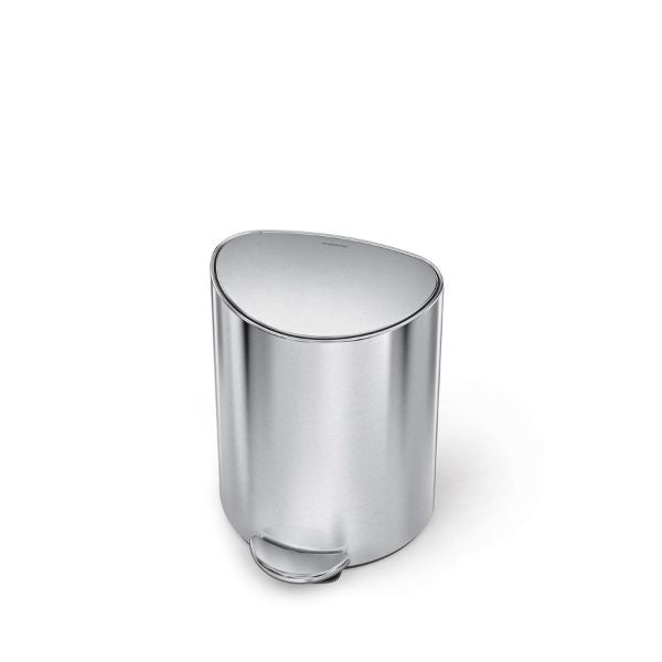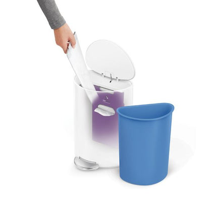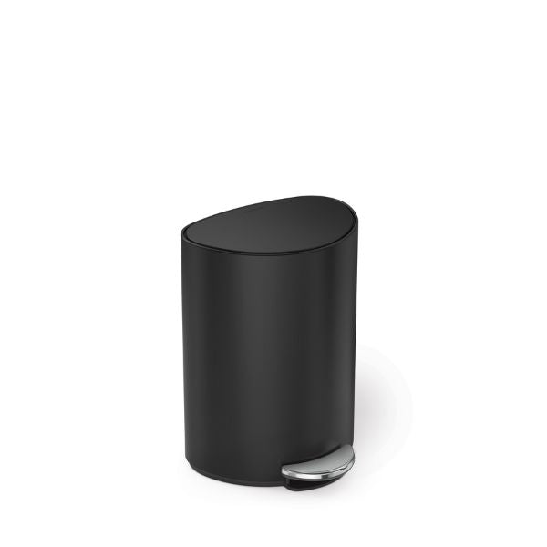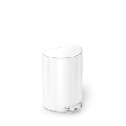 Upgrade your waste disposal system with the Simplehuman 6L Semi-Round Pedal Bin - Premium Version. Its soft semi-round shape and sleek internal hinge make it perfect for tight spaces, allowing it to sit flush against the wall. The built-in liner pocket stores and dispenses custom liners, making liner changes quick and convenient without extra trips.