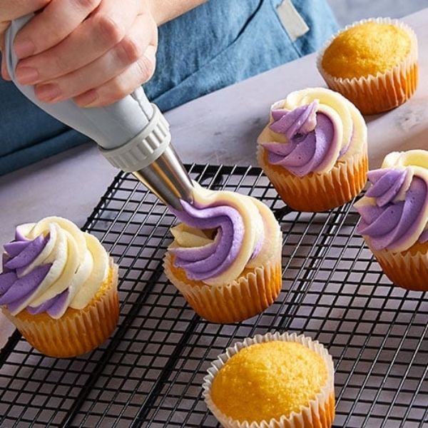 Dual Colour Piping: Pipe two colours simultaneously for stunning swirls, floral effects, and ombre finishes.